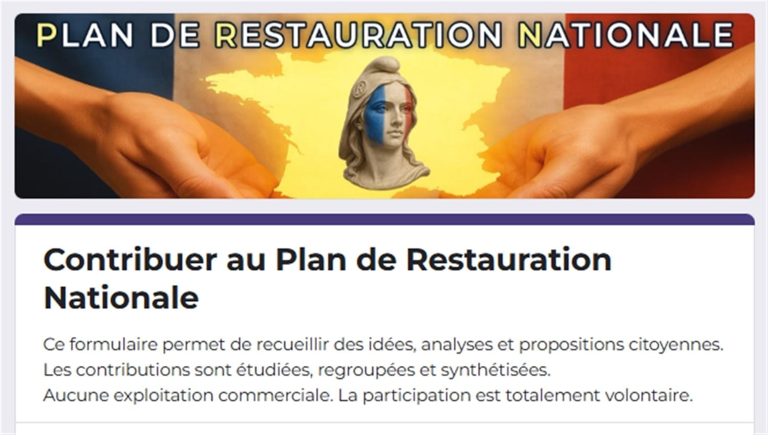 Le Plan de Restauration Nationale est une démarche citoyenne ouverte. Il ne s’agit pas d’un programme figé, mais d’un socle de réflexion collective, destiné à être enrichi par l’expérience, l’intelligence et les propositions des citoyens.